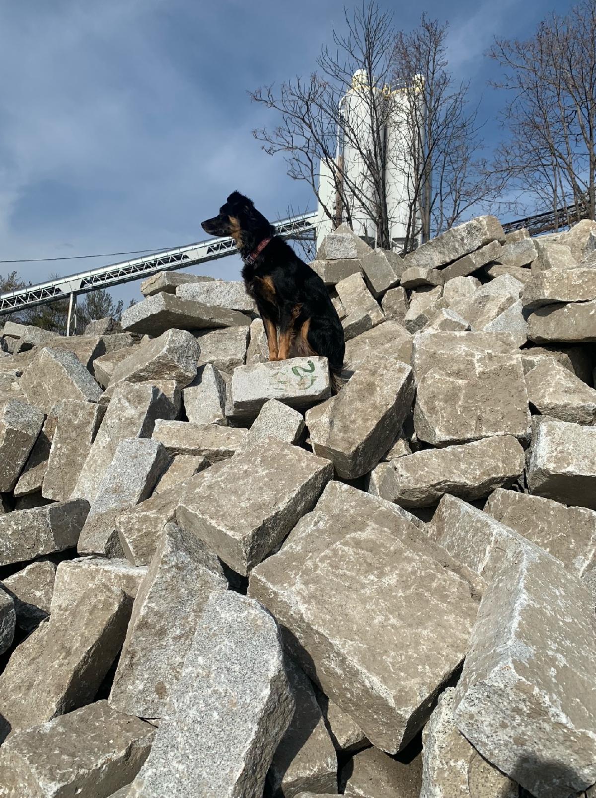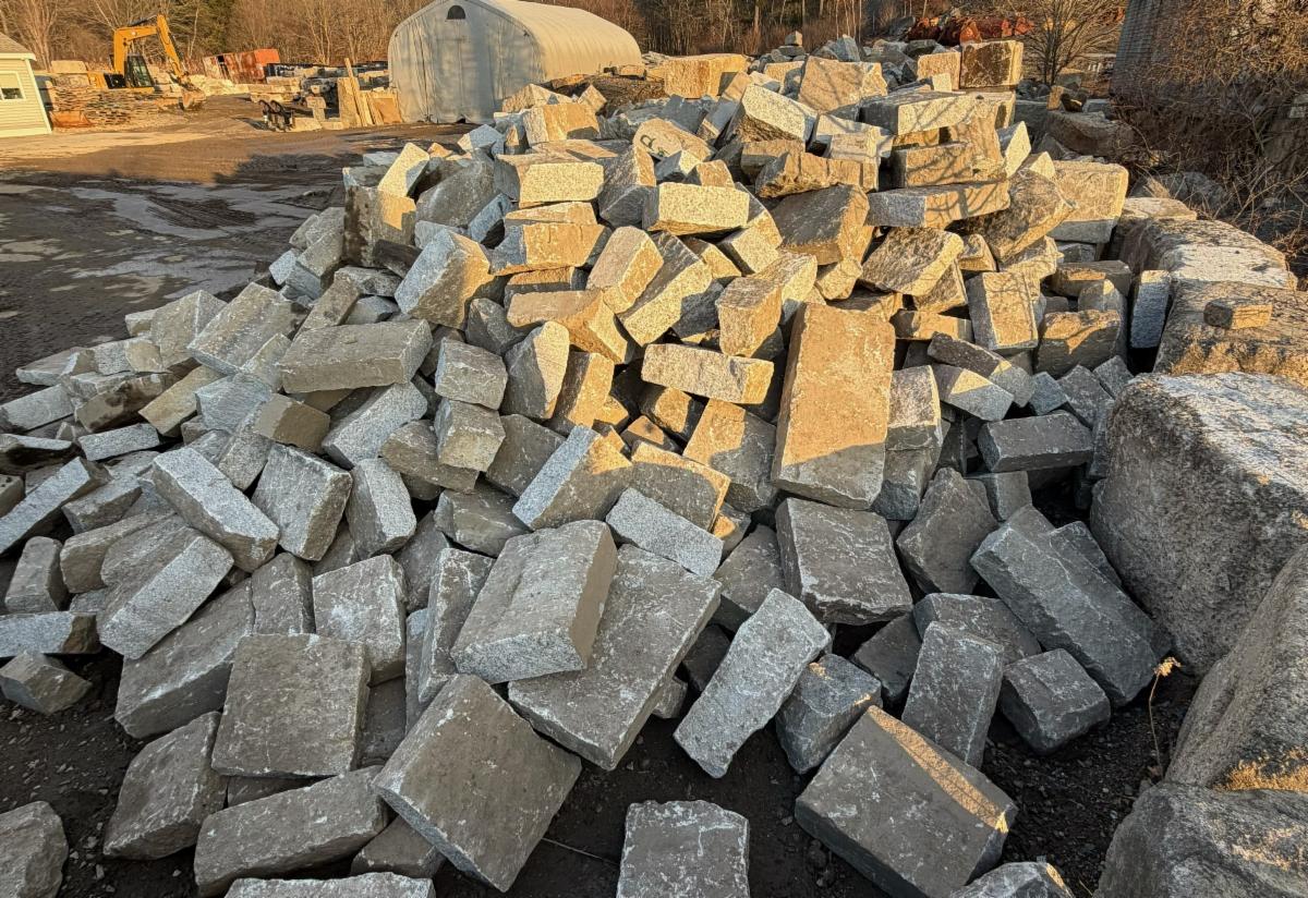 Reclaimed granite curbing split into squares and recs.