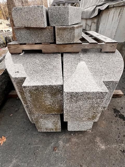 Originally commissioned as part of an 1980’s exterior hardscape and landscape plan of an apartment building in Boston. The bollards and benches adorned an outdoor seating area for the building.