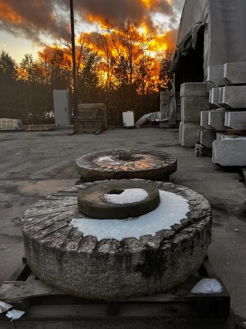 We recently rescued three beautifully weathered and aged original New England granite millstones from a private collection.